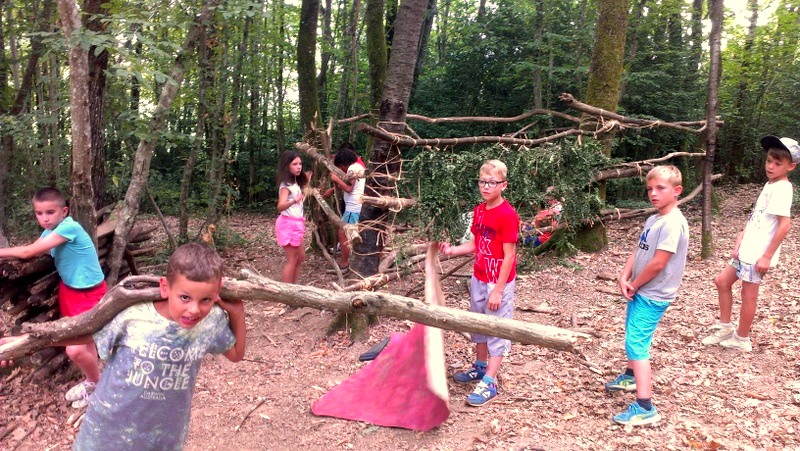 la forêt, on joue les bâtisseurs, tout en bois mort, sans clous ni vis,