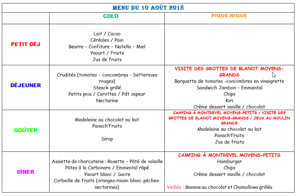 Alors consolons-nous avec le menu du jour...