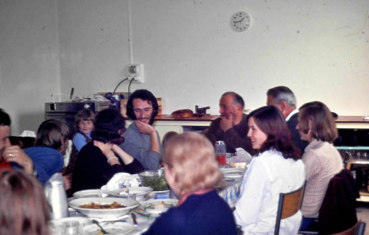 pendant les chantiers, le repas du soir est un temps d'échanges et de joie !